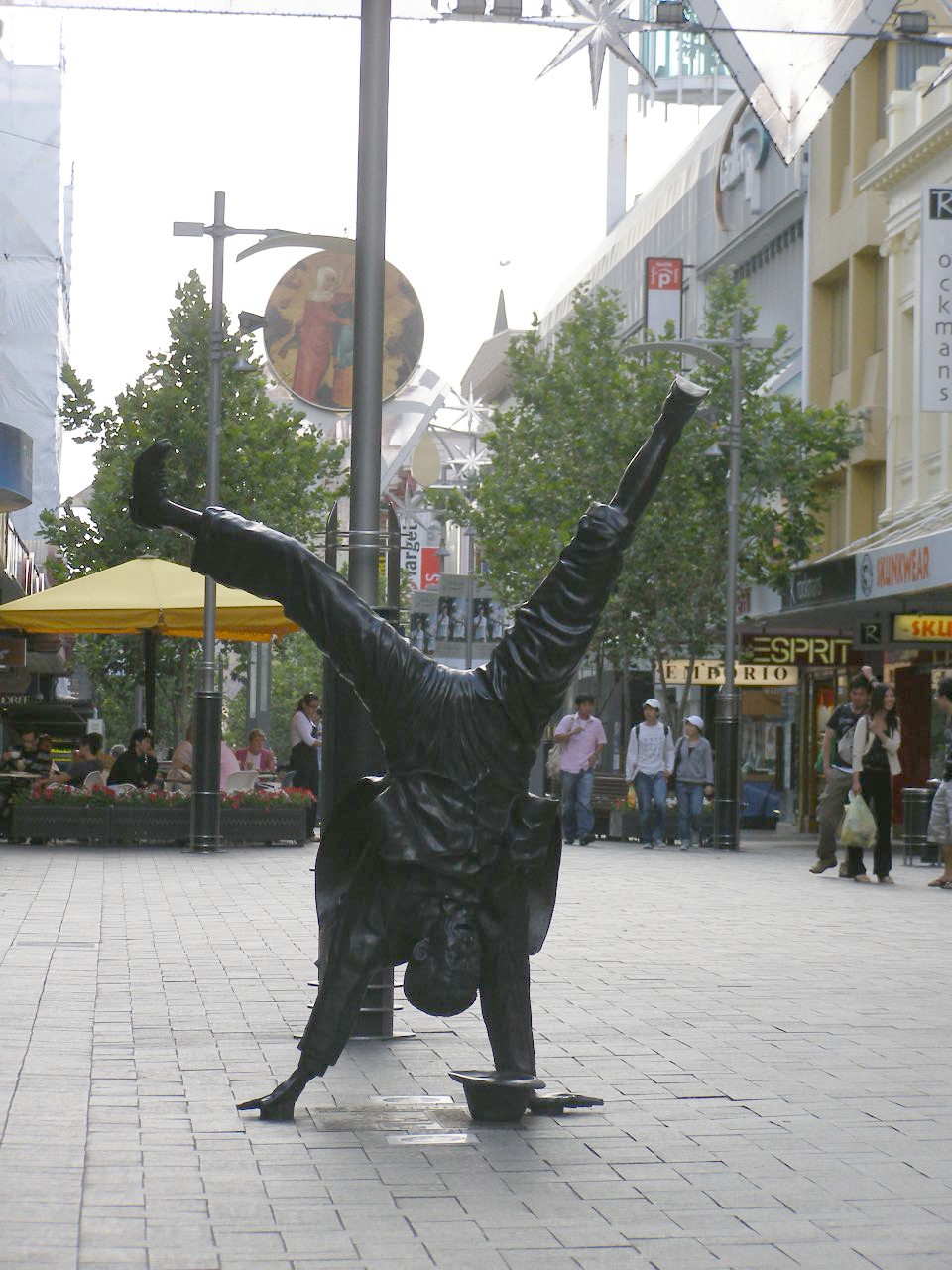 Sculpture of man doing handstand,