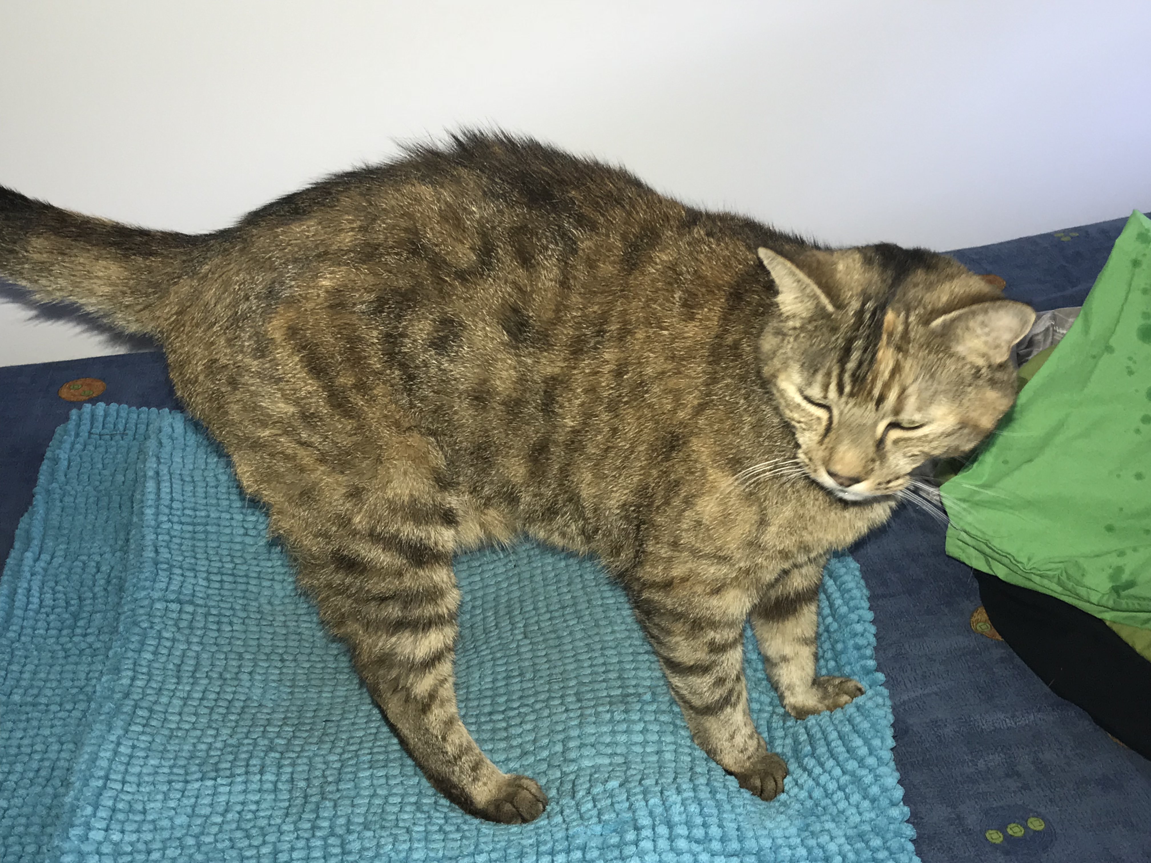 Sunny on top of computer desk, at or beyond her athleticism