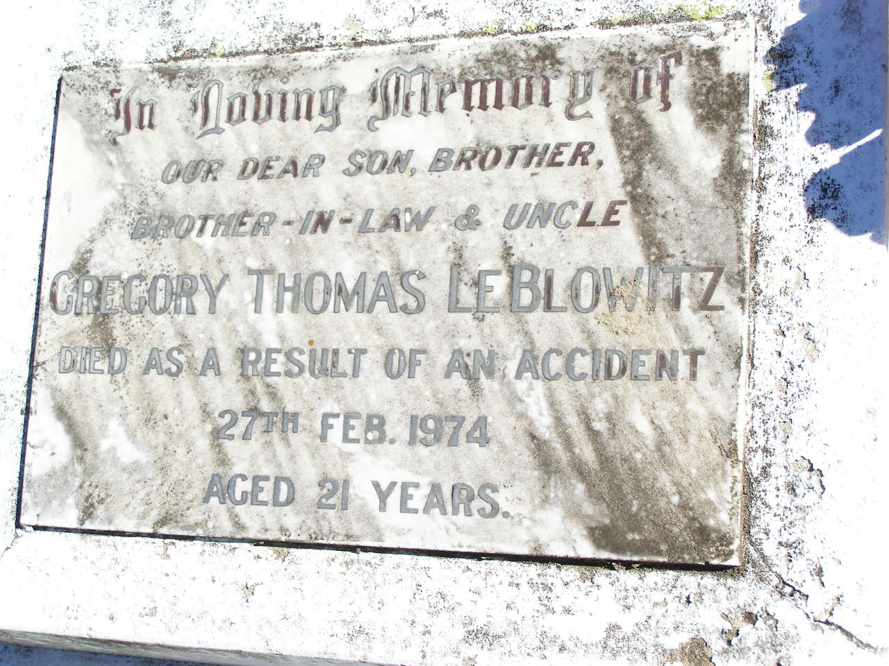died accident 27 Feb 1974 aged 21 years;