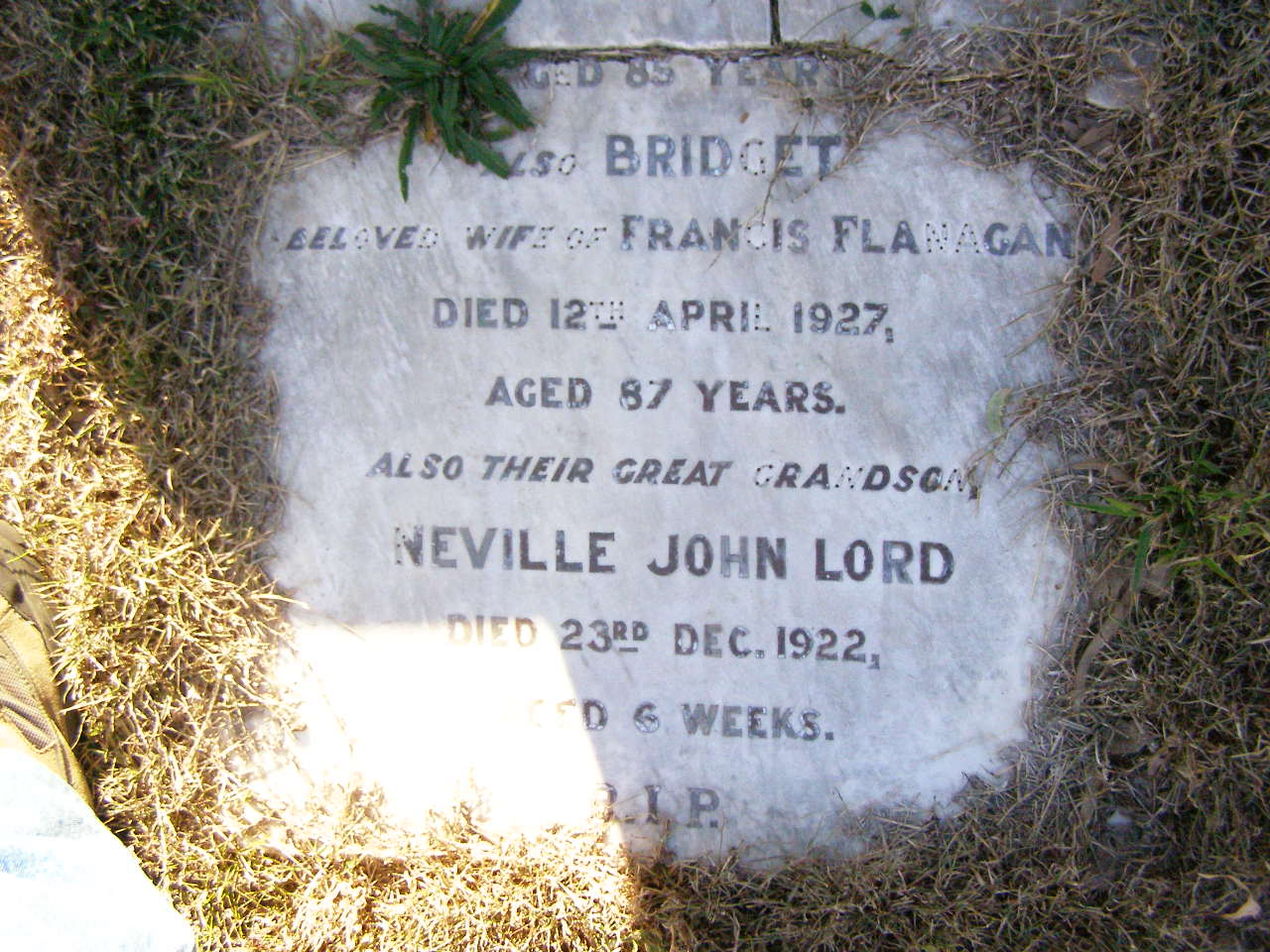 died 27 Sept 1959 aged 85 years;