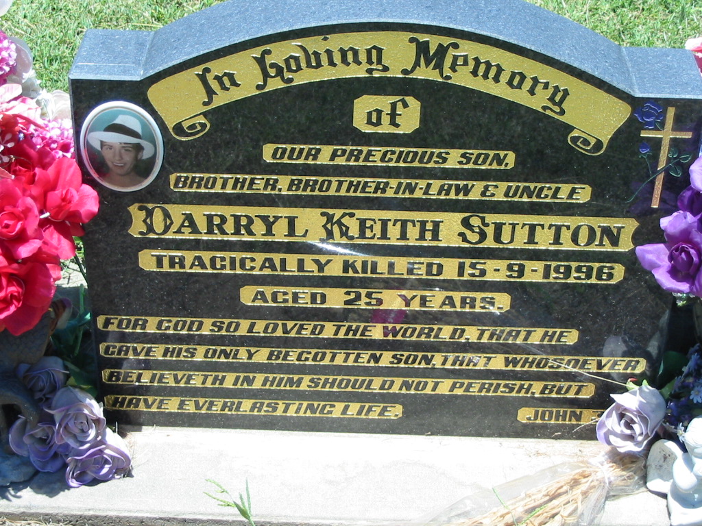 tragically killed 15-9-1996 aged 25 years;
