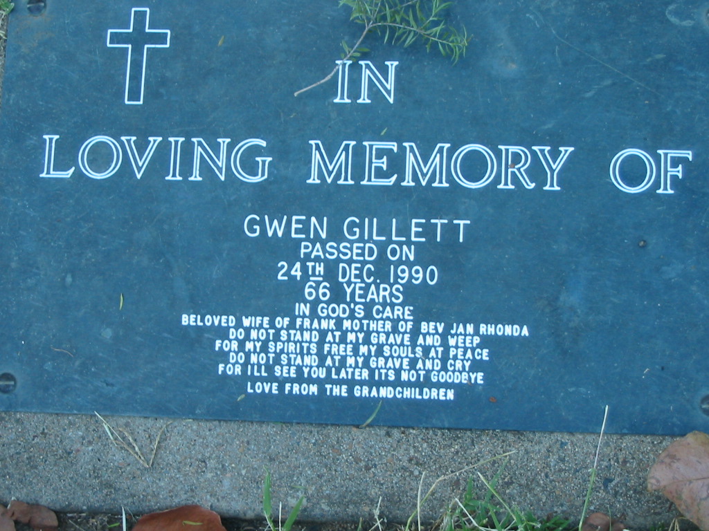 died 22 Sept 2001 aged 79 years,