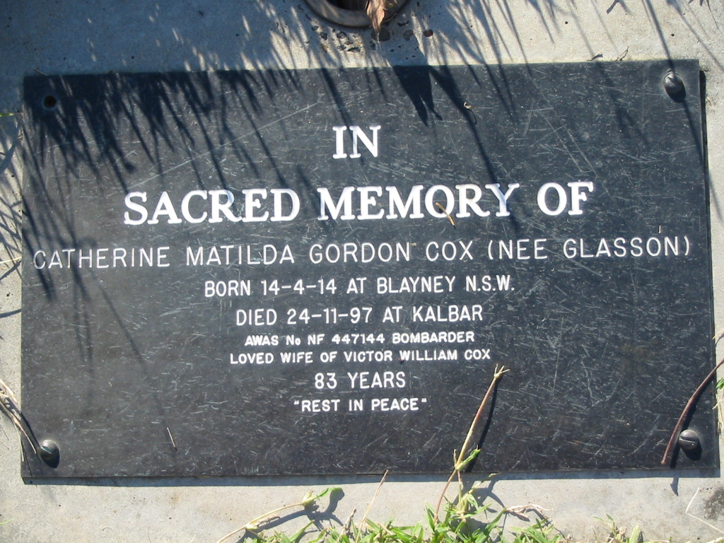 Catherine Matilda Gordon COX (nee GLASSON),