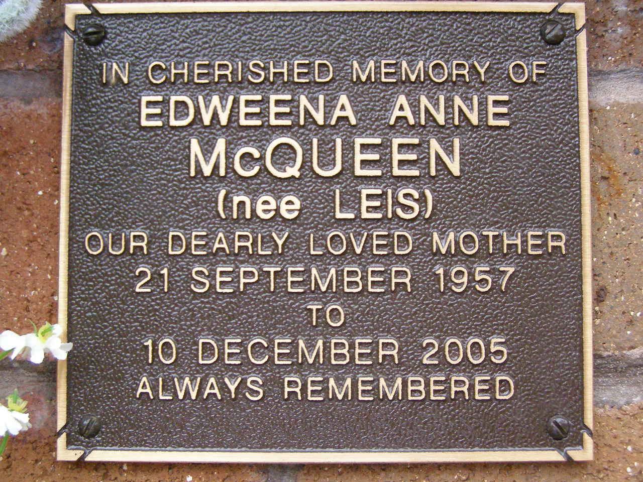 Edweena Anna MCQUEEN (nee LEIS),