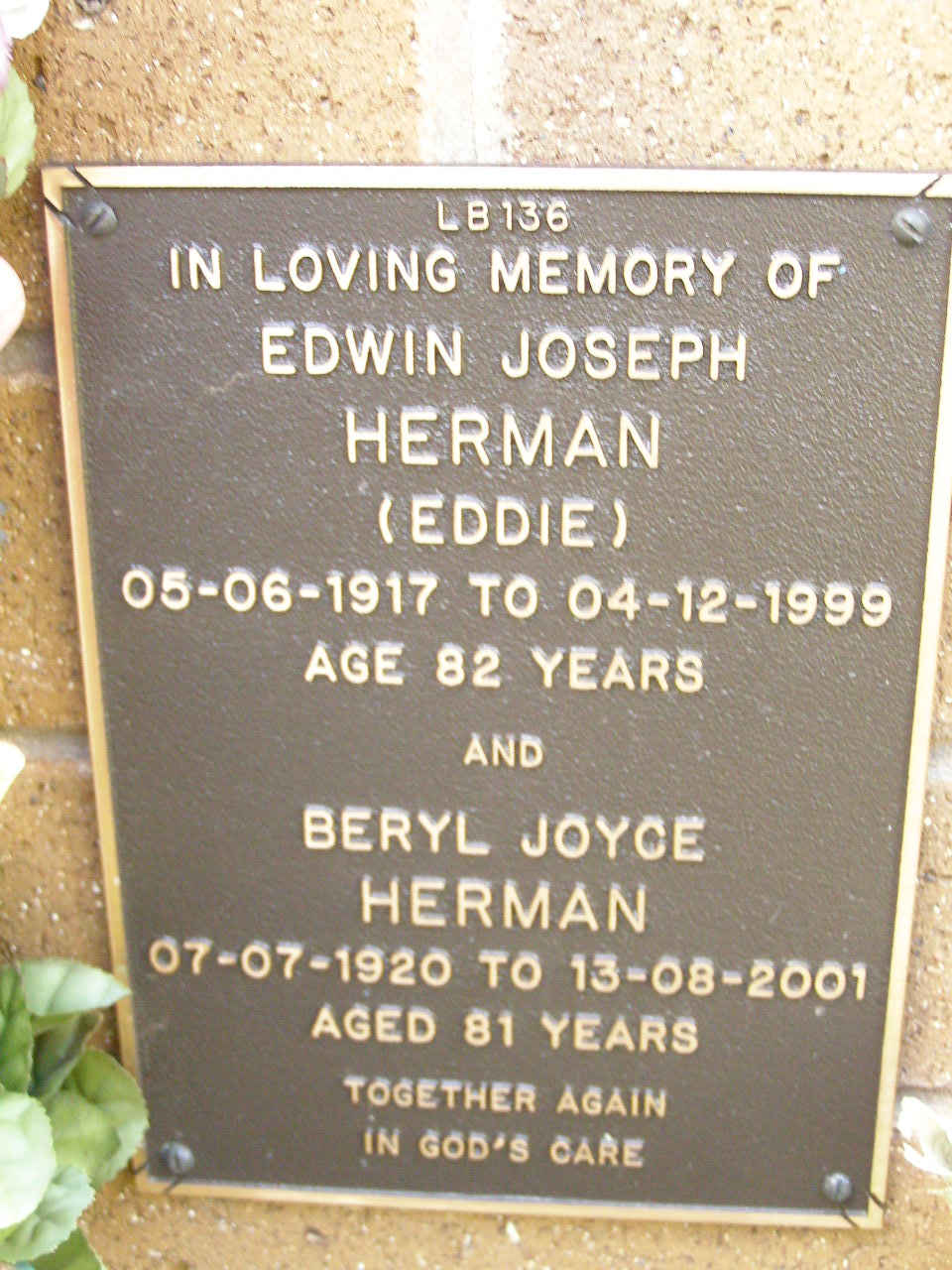 14-4-1914 - 10-10-2002 aged 88 years;