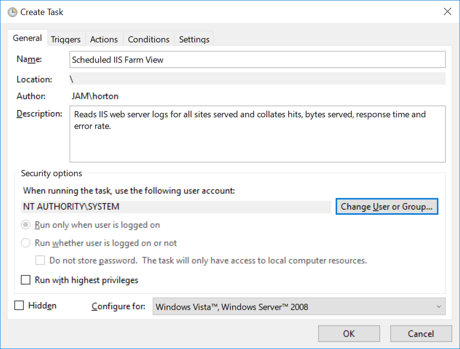 Windows Task Scheduler to configure IIS Farm View.