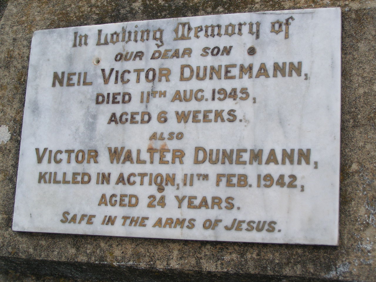 died 11 Aug 1945 aged 6 weeks;