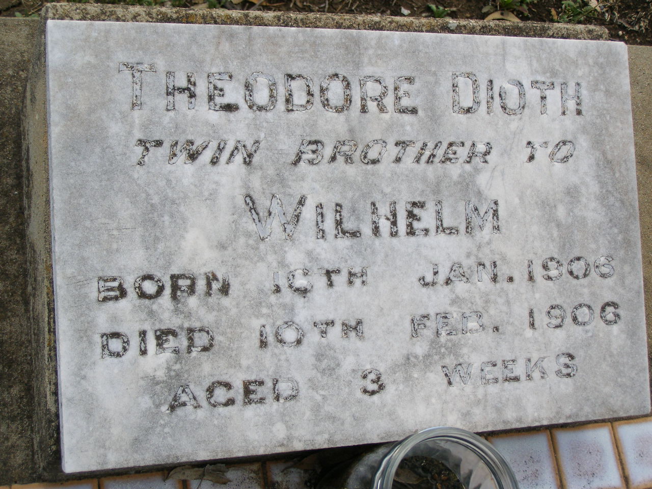born 16 Jan 1906 died 10 Feb 1906 aged 3 weeks;