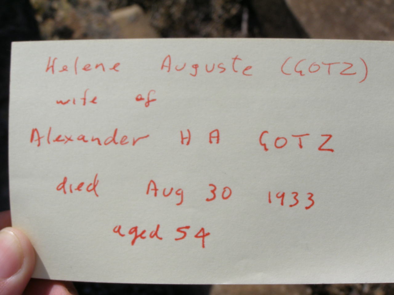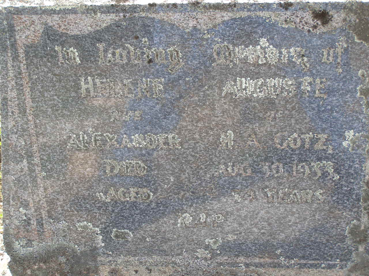 Helene Auguste, wife of Alexander H.A. GOTZ,